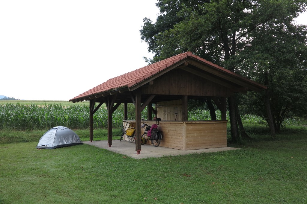 Mi trije pa smo se odpeljali proti Otočcu in malo pred njim, v vasi Lešnica, prespali pod kozolcem.