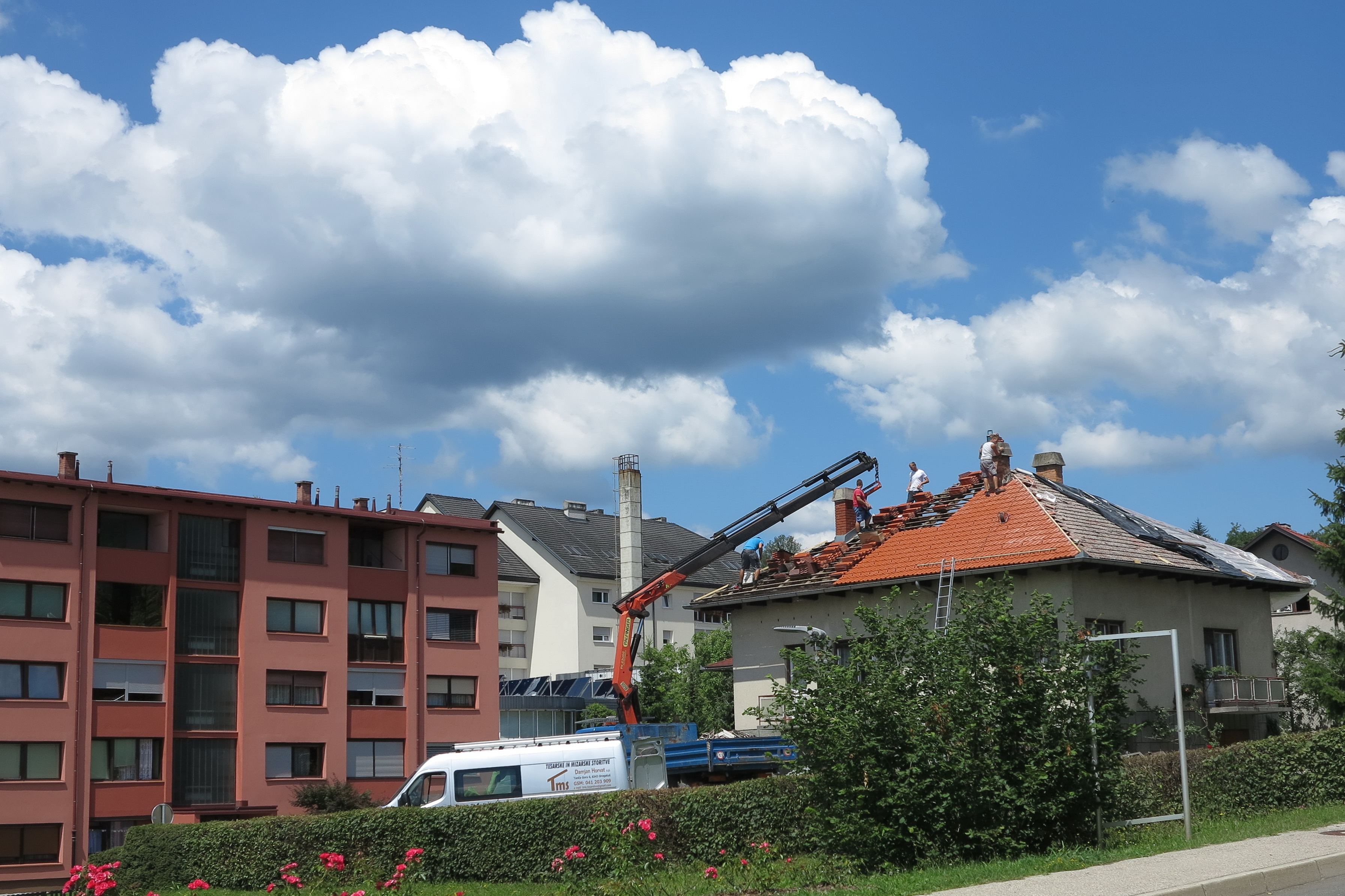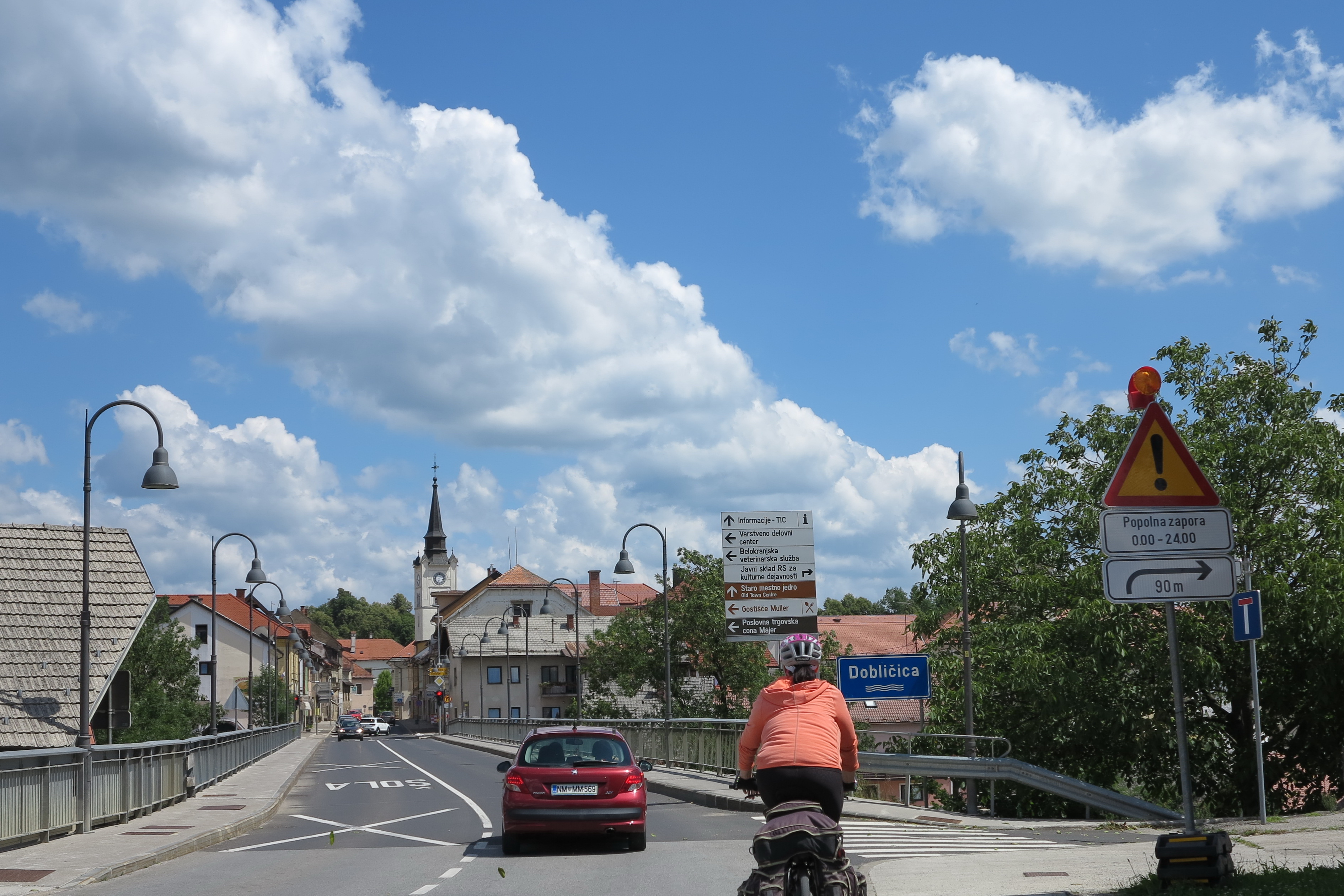 sva se odpeljala skozi Kanižarico v Črnomelj (videla sva poškodovane strehe, ki jih je poškodovala nevihta pred dnevi).